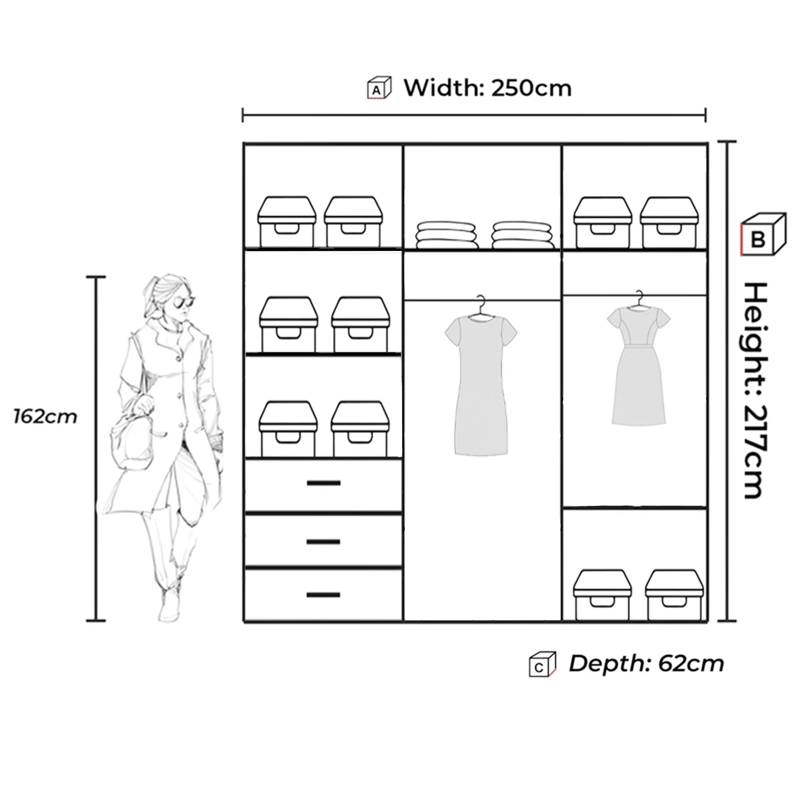 The elegant horizontal panelled door further adds to its beauty and also creates a calm, tranquil aura – perfect when you want your bedroom as a place where you can escape the hassle and bustle of the day! The Miami Large Sliding Wardrobe is the equivalent size of 5 single wardrobes. This wardrobe also benefits from the high-quality sliding mechanism and you would barely hear any noise with the smooth gliding motion of the doors. It is crafted from 16mm laminated particle board to give you beauty, stability and durability all in one.