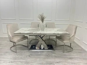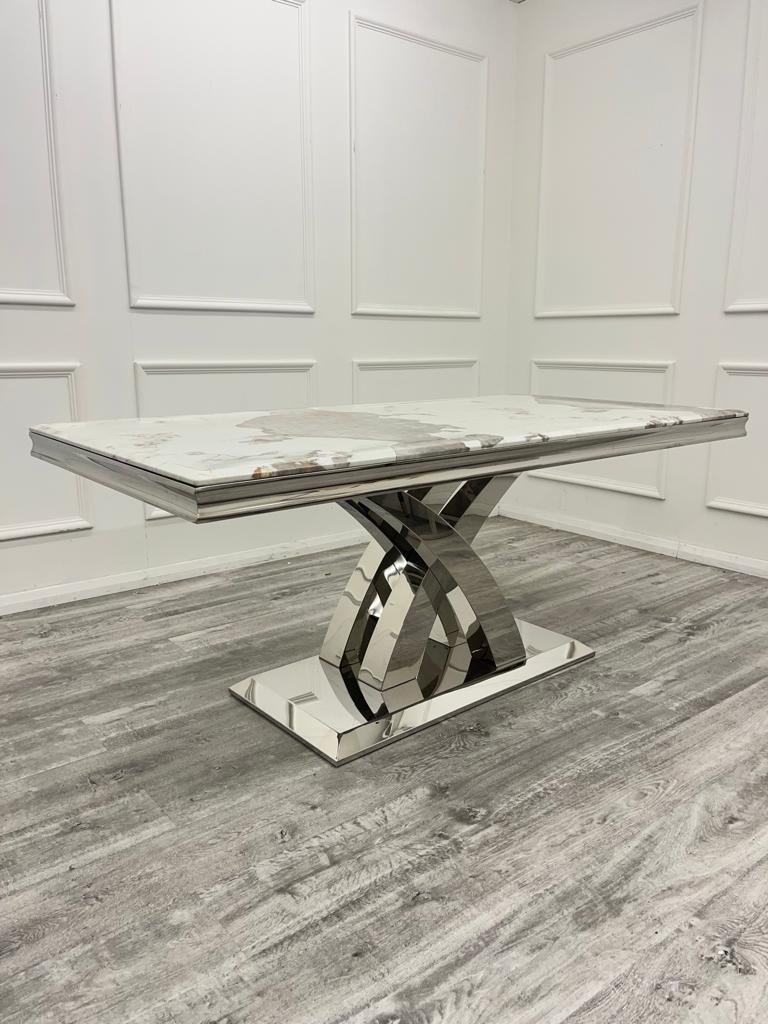 Lucien 1.6 Chrome Dining Table with Polar White Sintered Stone Top