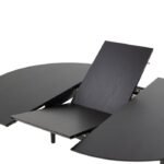 Introducing our elegant round dining table, featuring soft edges and a luxurious black oak veneer. Effortlessly extend the surface with a convenient butterfly extension, perfect for accommodating the entire family. Available now at Home Store UK.