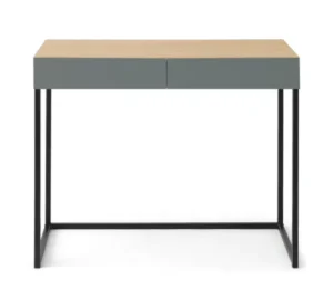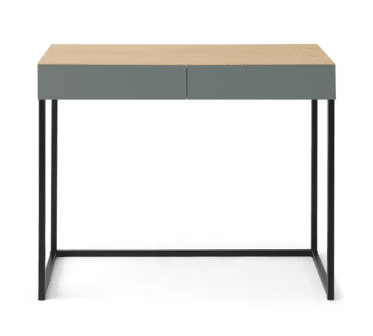 Oak Desk/Dressing Table with Grey Drawers and Steel Legs
