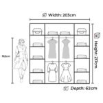 203:- Width: 203 cm, Height: 216 cm, Depth: 62 cm