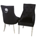 Our Bestseller, the beautiful Bentley Dining Chair is the epitome of high end furniture. Featuring stunning quilted back detail with our signature chrome lion knocker and complete with quality studded detail along the border of the chair. A beautiful piece that would compliment any of our Dining Table . The Bentley Dining Chair is available in a velvet finish in a range of colours including dark grey, light grey and shimmer grey.