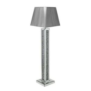 A striking balance between a simple piece of furniture and understated glamour is our Gatsby range . Borders filled with shining diamond-like crystals , this beautiful item is made of Mirrored Glass and MDF. Add a touch of luxury to any room with this elegant Floor lamp from the Gatsby range . dunelm lamp tables
