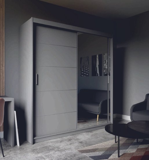 The Wardrobe 150cm is a practical storage unit. It has two sliding doors that are easy to use and save space. Inside, you’ll find four shelves for your belongings and two hanging rails for your clothes.