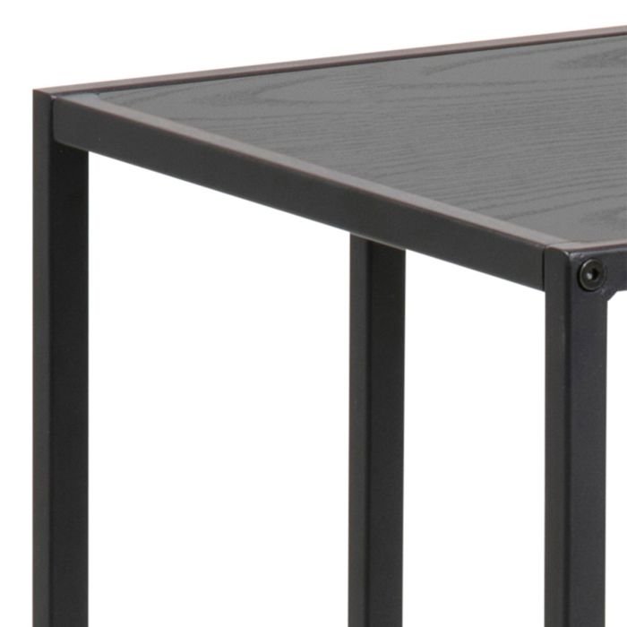 Enhance your space with this rectangular side table from Home Store UK, featuring an elegant ash black top and a sturdy matt black steel base. Its sleek design makes it a versatile and practical addition to any room.