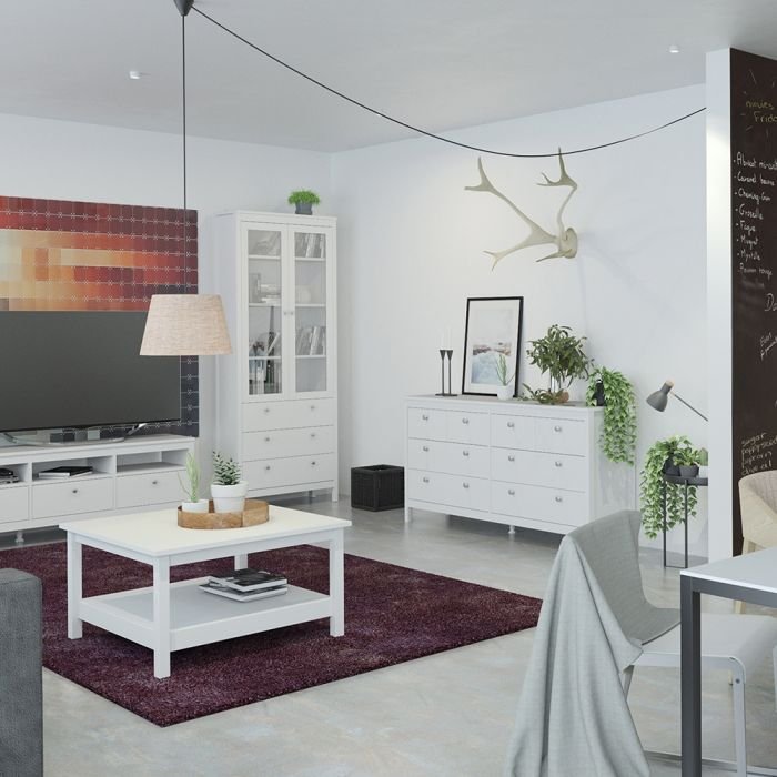 A modern tv-unit including 3 drawers for all your storage needs in a striking design complete with a simple plastic handle, also available in contrasting matt black