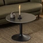 Add a modern flair to your decor with this round coffee table from Home Store UK. It features a matte black ceramic top paired with black-painted MDF for a sleek look. The trumpet base, made from matte black rough powder-coated steel, offers both elegance and stability.