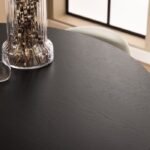 Add timeless elegance to your dining area with our spacious round table, featuring a matte black lacquered oak veneer top and a sturdy matching base. Its generous size makes it ideal for hosting and brings a sophisticated touch to every meal. Available at Home Store UK.