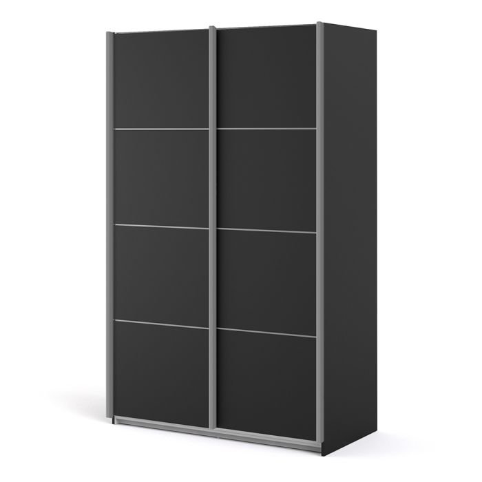 Ross Sliding Wardrobe 120cm in Black Matt with Black Matt Doors with 2 Shelves