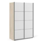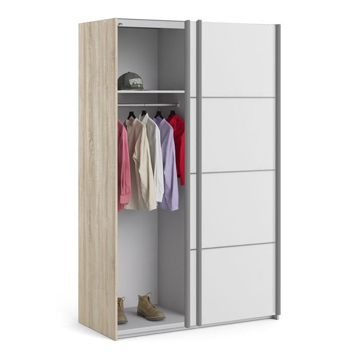 Be the first to review “Ross Sliding Wardrobe 120cm in Oak with White Doors with 2 Shelves” Cancel reply