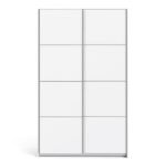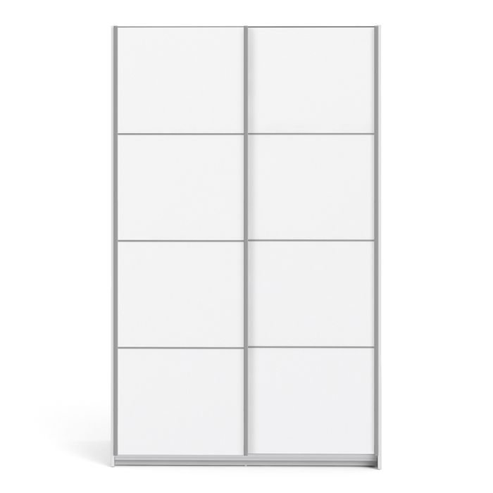 Ross Sliding Wardrobe 120cm in White with White Doors with 5 Shelves