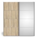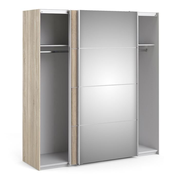 Ross Sliding Wardrobe 180cm in Oak with Oak and Mirror Doors with 2 Shelves