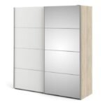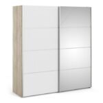 Be the first to review “Ross Sliding Wardrobe 180cm in Oak with White and Mirror Doors with 5 Shelves” Cancel reply
