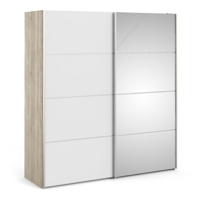 Ross Sliding Wardrobe 180cm in Oak with White and Mirror Doors with 5 Shelves