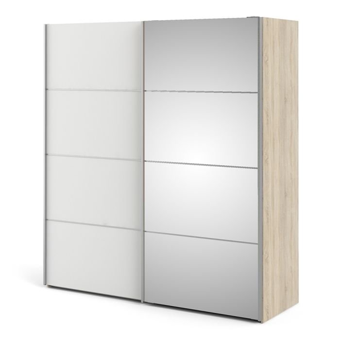 Ross Sliding Wardrobe 180cm in White with Oak Doors with 2 Shelves