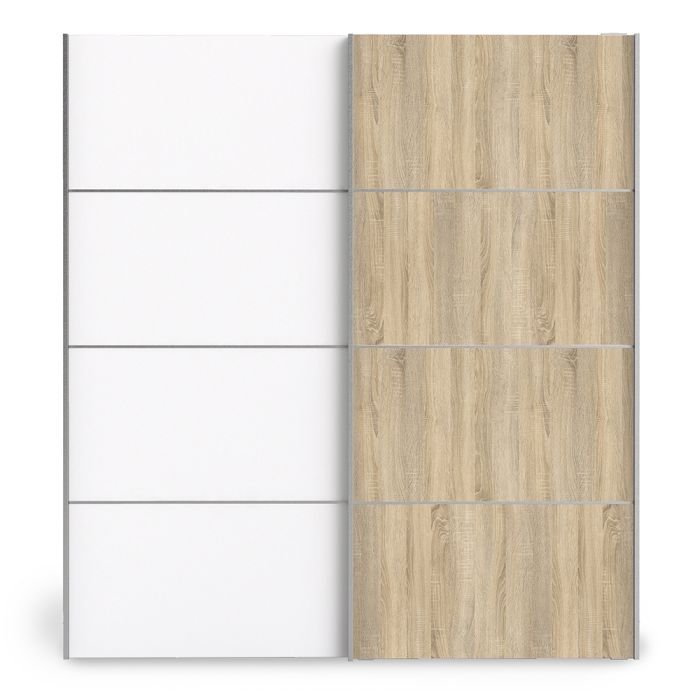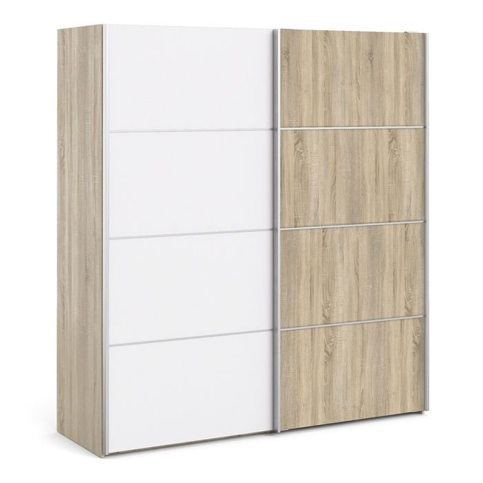 Ross Sliding Wardrobe 180cm in Oak with White and Oak Doors with 5 Shelves