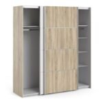 Be the first to review “Ross Sliding Wardrobe 180cm in Oak with White and Oak Doors with 5 Shelves” Cancel reply