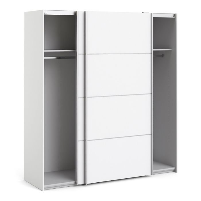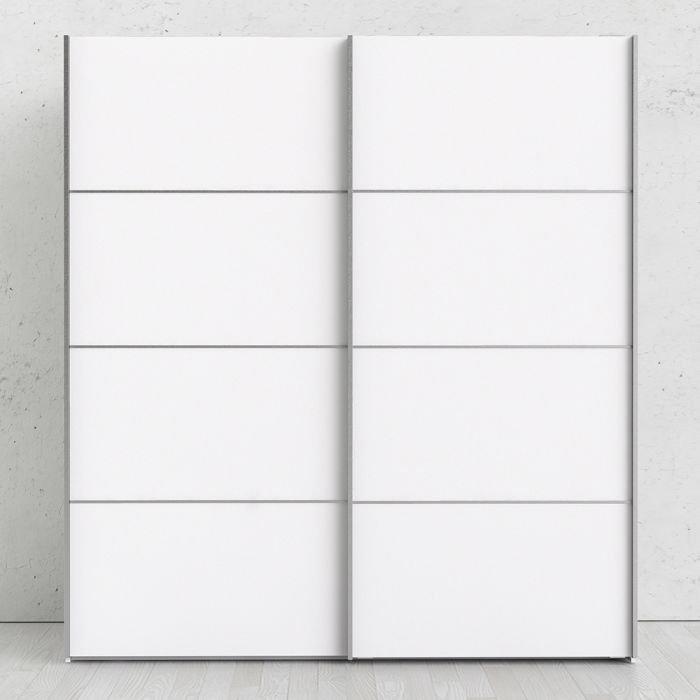 Ross Sliding Wardrobe 180cm in White with White Doors with 2 Shelves