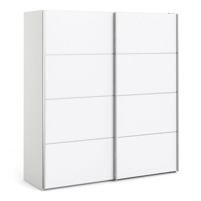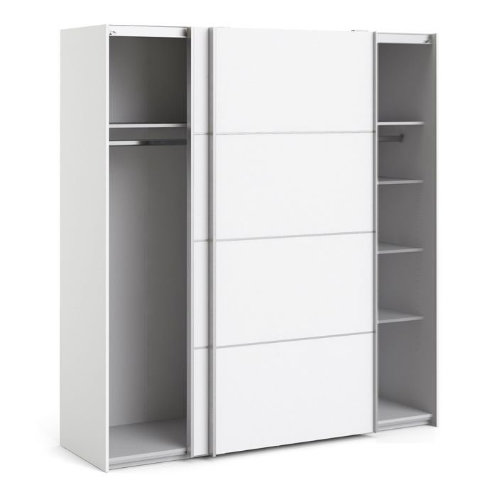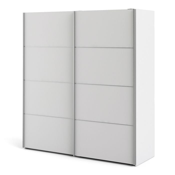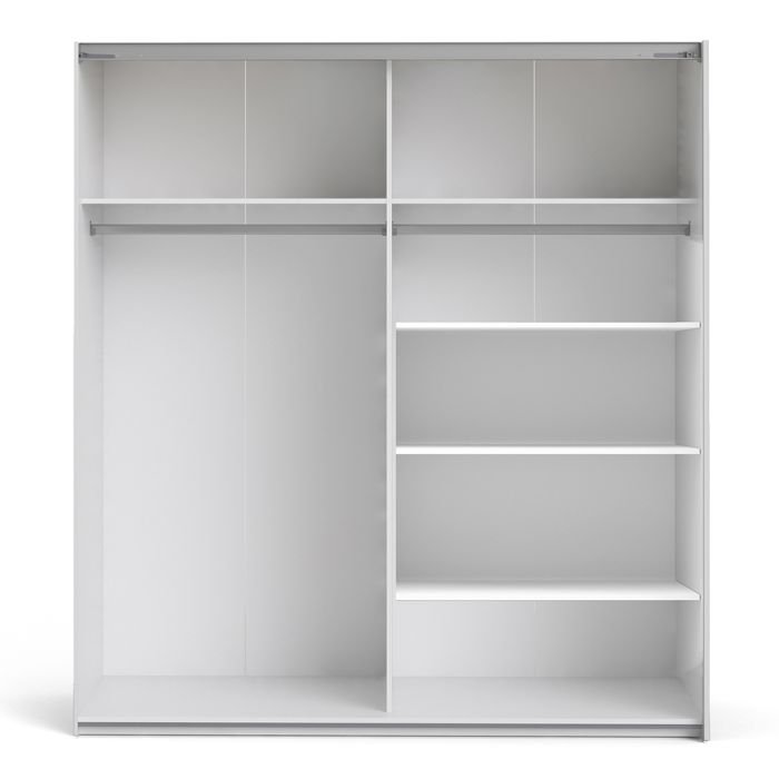 Ross Sliding Wardrobe 180cm in White with White Doors with 5 Shelves