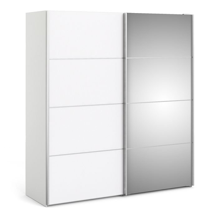 Ross Sliding Wardrobe 180cm in White with Mirror Doors with 2 Shelves