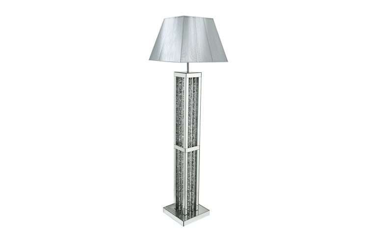 A striking balance between a simple piece of furniture and understated glamour is our Gatsby range . Borders filled with shining diamond-like crystals , this beautiful item is made of Mirrored Glass and MDF. Part of the Gatsby range this modern Floor lamp is an added luxury to any home . side table lamps for bedroom