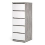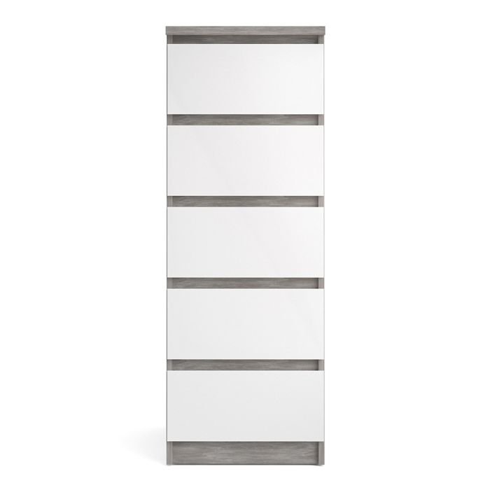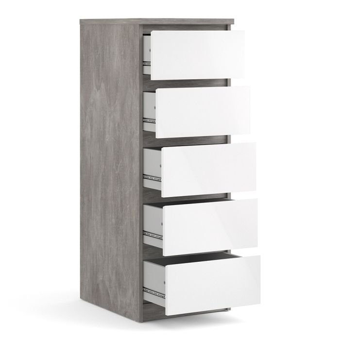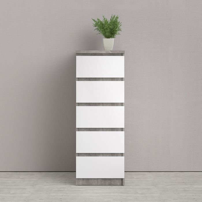 Sydney Narrow Chest of 5 Drawers in Concrete and White High Gloss
