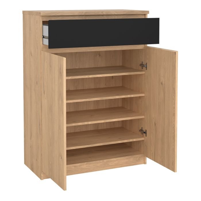 Sydney Shoe Cabinet with 2 Doors 1 Drawer in Jackson Hickory Oak and Black