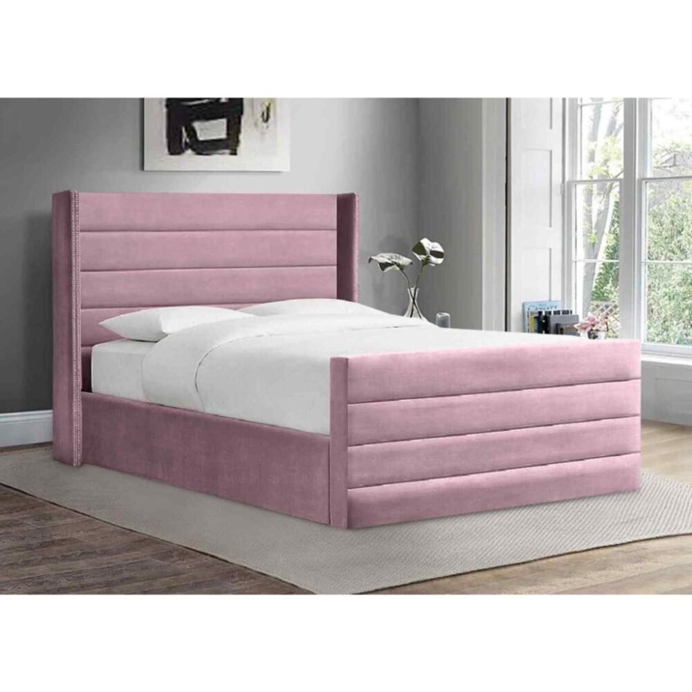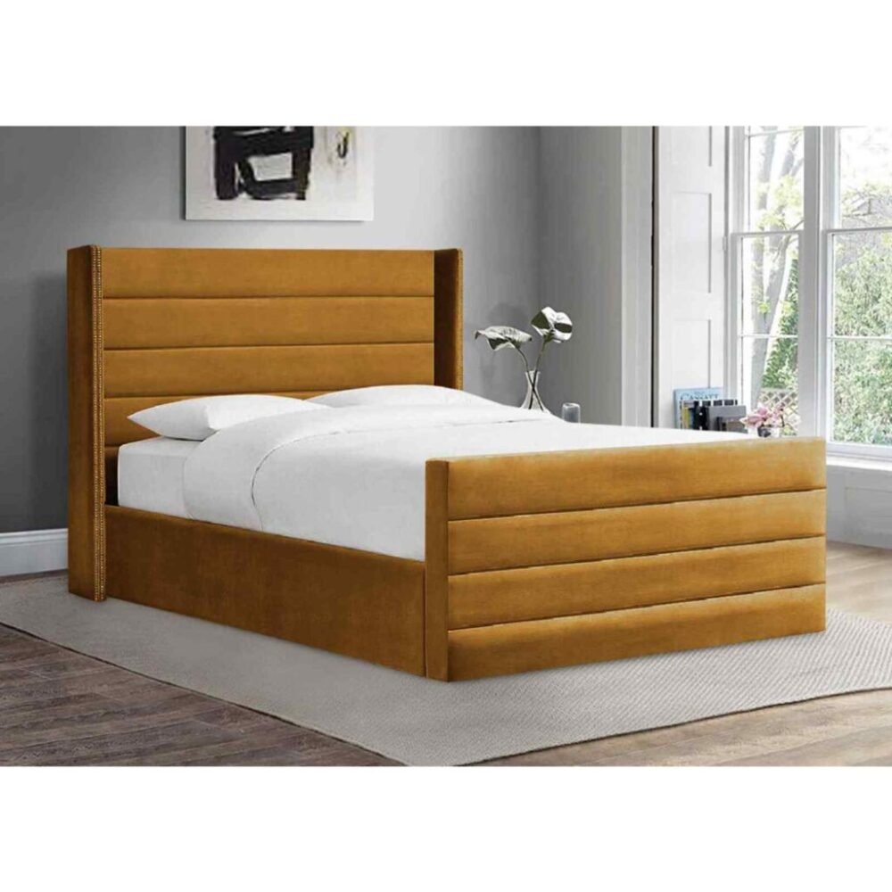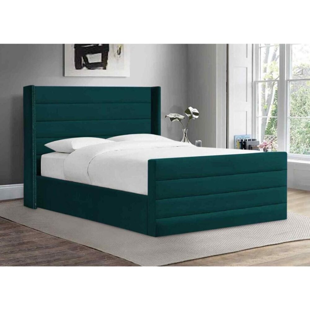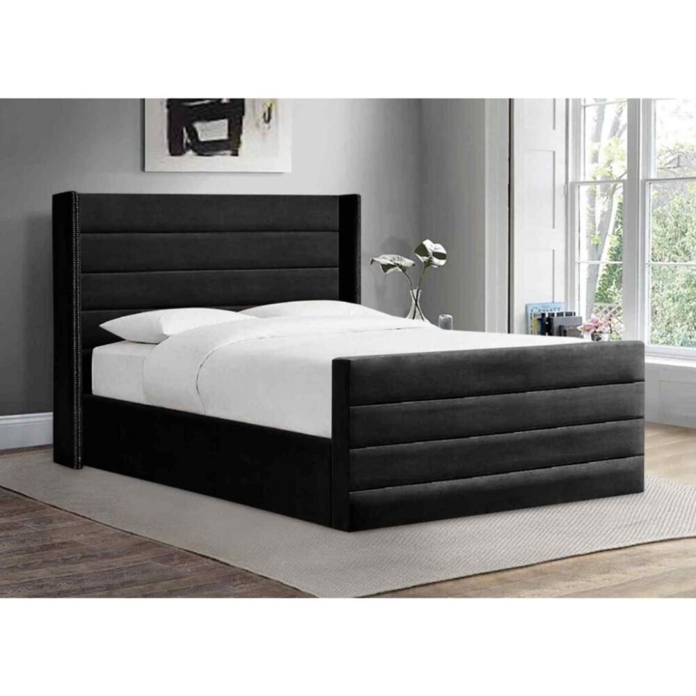 This is an attractive bed that has an exclusive style, handmade plication complemented with parts and edging across the headboard, this excellent bed frame is sure to leave a long-lasting impression on any room decor. Available in many magnificent plush velvet colors proficiently handcrafted in the UK upholstered bed.