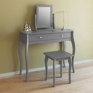 Introducing our Victoria Dressing Table, a Provence-inspired masterpiece that exudes elegance. The table’s pine top beautifully contrasts with its delicate detailing and crisp white finish, while stainless steel handles add a modern touch that complements any room style. With a single drawer providing ample storage space for makeup and jewellery, staying organised is effortless. Complete the look with our Victoria Dressing Table Stool and Mirror, the perfect match for this enchanting piece, creating a sophisticated and timeless ambiance in your bedroom. Elevate your space with this exquisite design and embrace the allure of classic beauty.