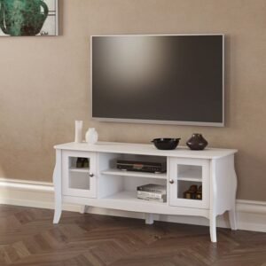 Victoria TV Table (Narrow) 2 Door 2 Shelves in White