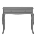This Provence-inspired Victoria Dressing Table brings a touch of elegance to any bedroom. With delicate detailing, a grey finish, and stainless steel handles, this piece works well with any style of room. The single drawer offers great storage space for makeup, jewelry, or other such items, helping to keep them organized and within easy reach. The Dressing Table is best matched with the Victoria Dressing Table Stool and Mirror.