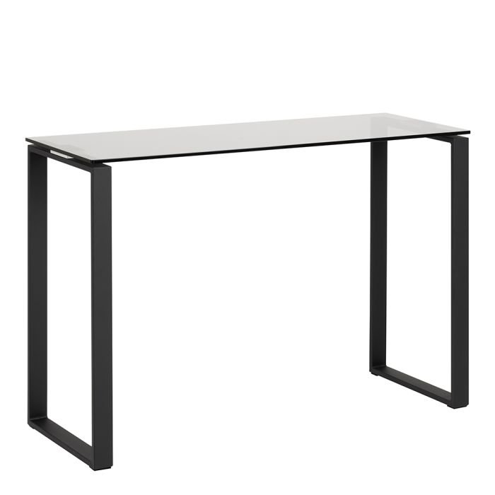 Enhance your space with this stylish console table from Home Store UK. Featuring a smoked tempered glass top and a matte black steel sledge base, its sleek design offers modern charm without overwhelming your room. A perfect blend of durability and elegance, this piece complements both contemporary and traditional interiors.