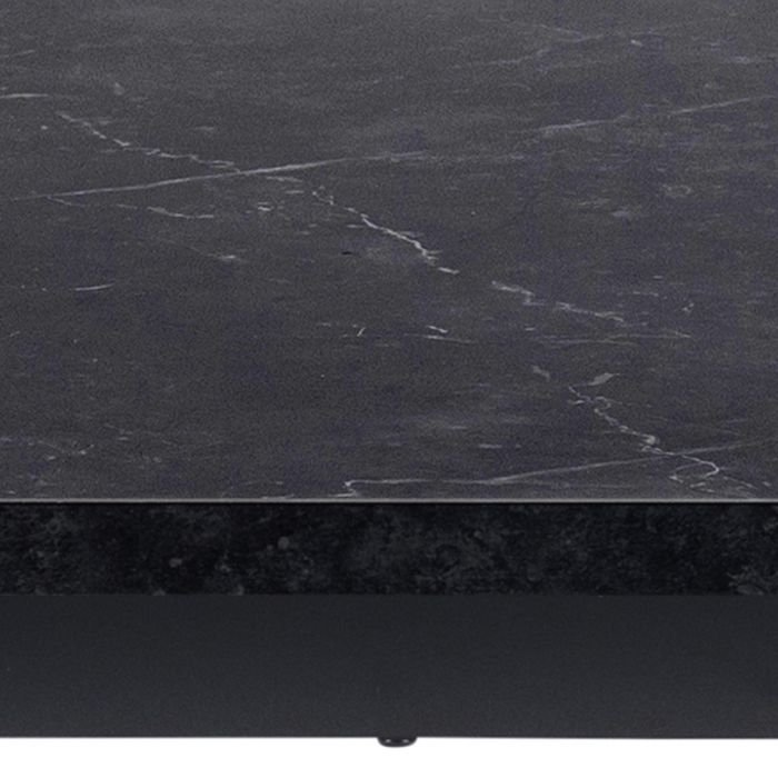 At Home Store UK, customize your dining area with this contemporary table that boasts a sleek black marble appearance. Crafted from metal and melamine, it combines visual appeal with lasting durability. The U-shaped metal legs add an industrial flair, making this table a striking addition to any home.