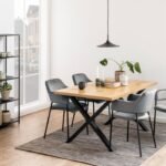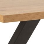 Transform your dining space with our rectangular table, designed to enhance both style and function. The textured wild oak-effect top adds a rustic charm, while the bold matte black steel cross base creates a striking modern contrast. This table effortlessly combines natural beauty with industrial flair, making it a standout centerpiece in any room.